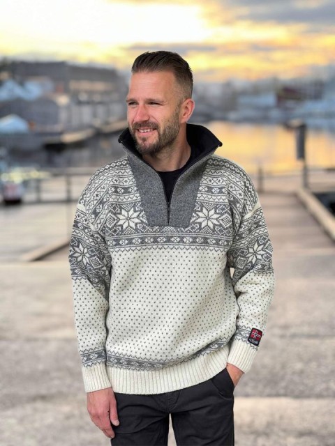 Modell Mønstret ullgenser er satt sammen av åttebladrose, sammen med elementer fra typiske norske strikke mønstre. Dette er en av våre bestselger og med stort farge utvalg vil du alltid finne en genser som passer.